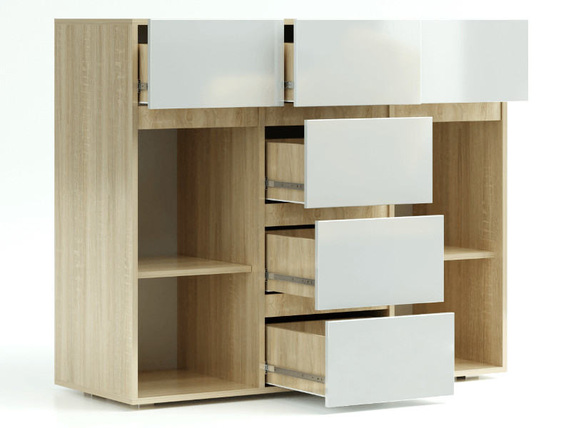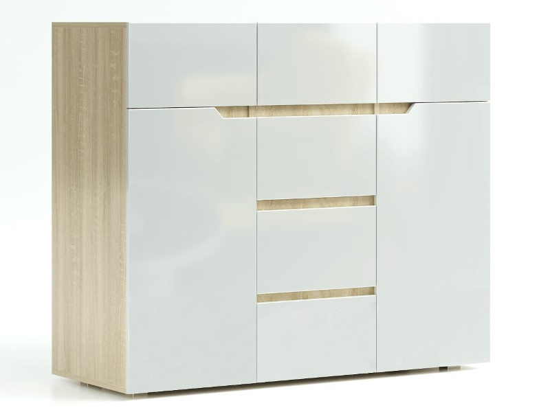 - Комод 1200 Трио Белый глянец