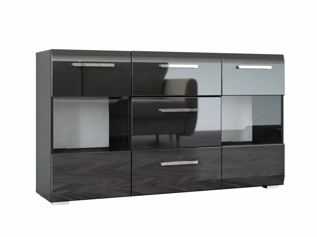 - Комод 3 ящика 2 двери со стеклом Домино черный
