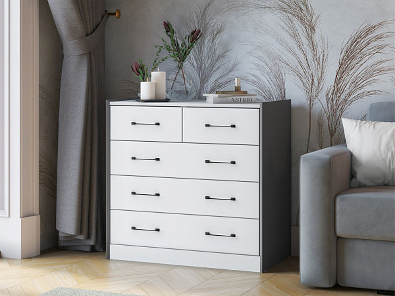 - Комод Риберо графит серый/белый снег