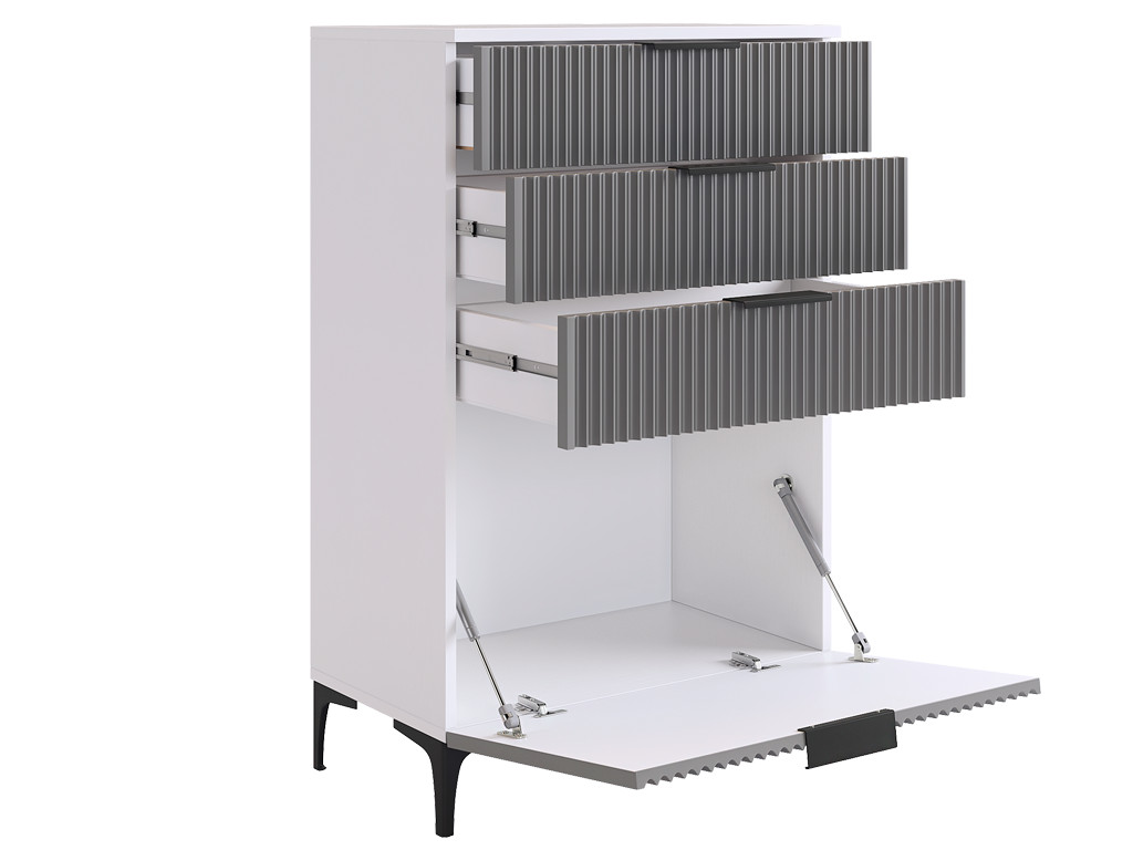 Состоит из: 3-х ящиков и нижней откидной барной секции.