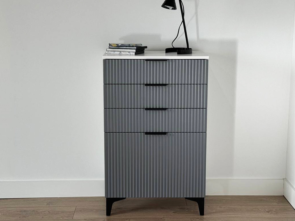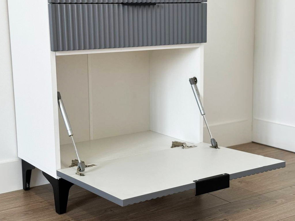 Комод «Зефир» — идеальное решение для детской и гостиной комнат. Он оснащён выкатными ящиками и откидной секцией, обеспечивая максимальный комфорт и удобство использования. Фасады украшены изящной фрезеровкой, которая придаёт изделию неповторимый шарм и элегантность.