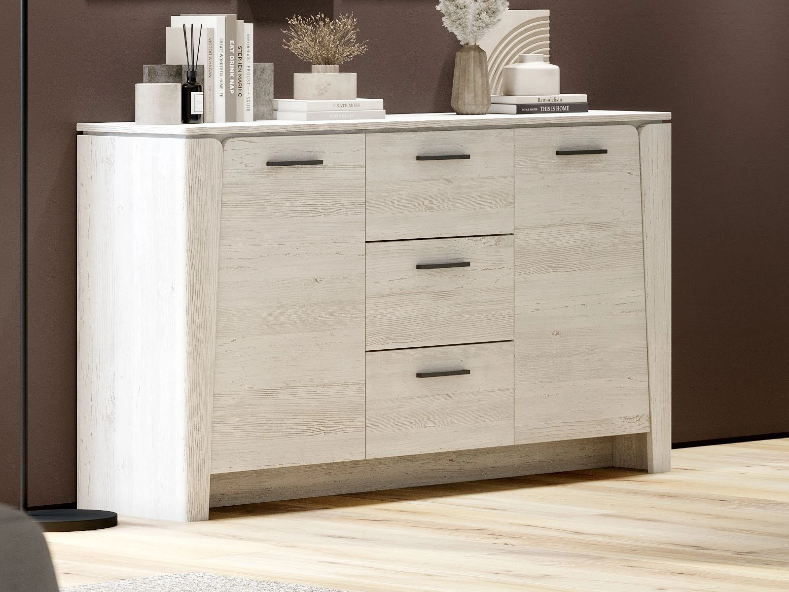 - Тумба 2 двери 3 ящика в гостиную Мальта Дуб винтерберг