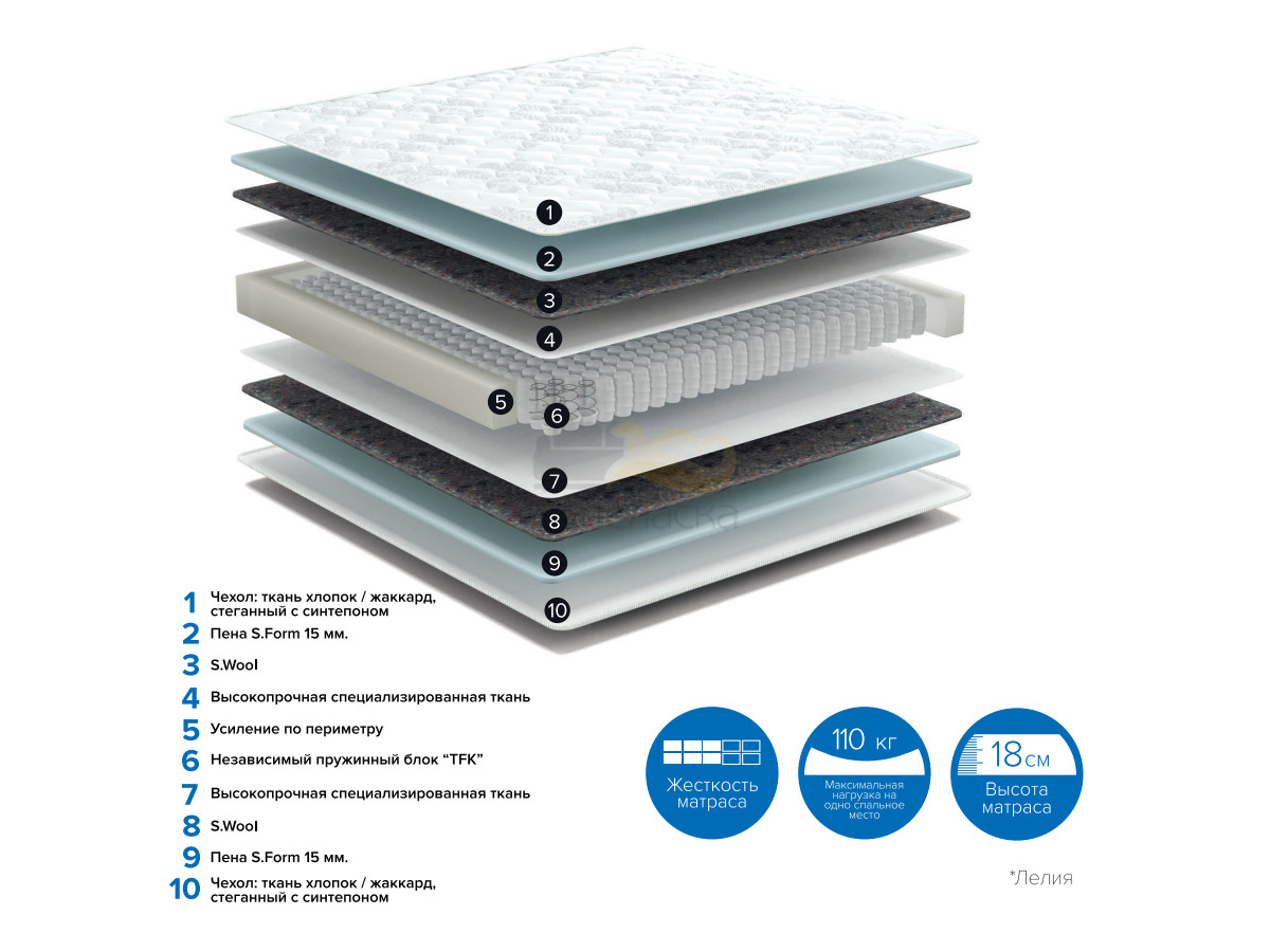 Наполнение: Независимый пружинный блок "TFK 120" + ППУ 1,5 см + усиление по периметру