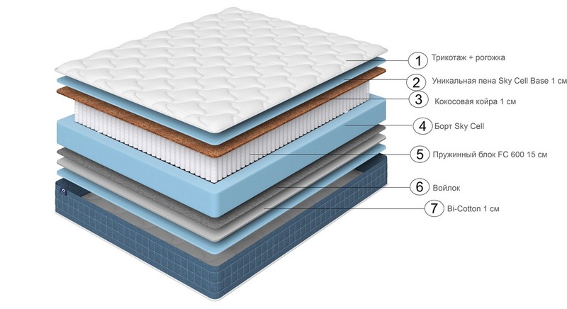 Основной наполнитель: высокоэластичная пена/кокос