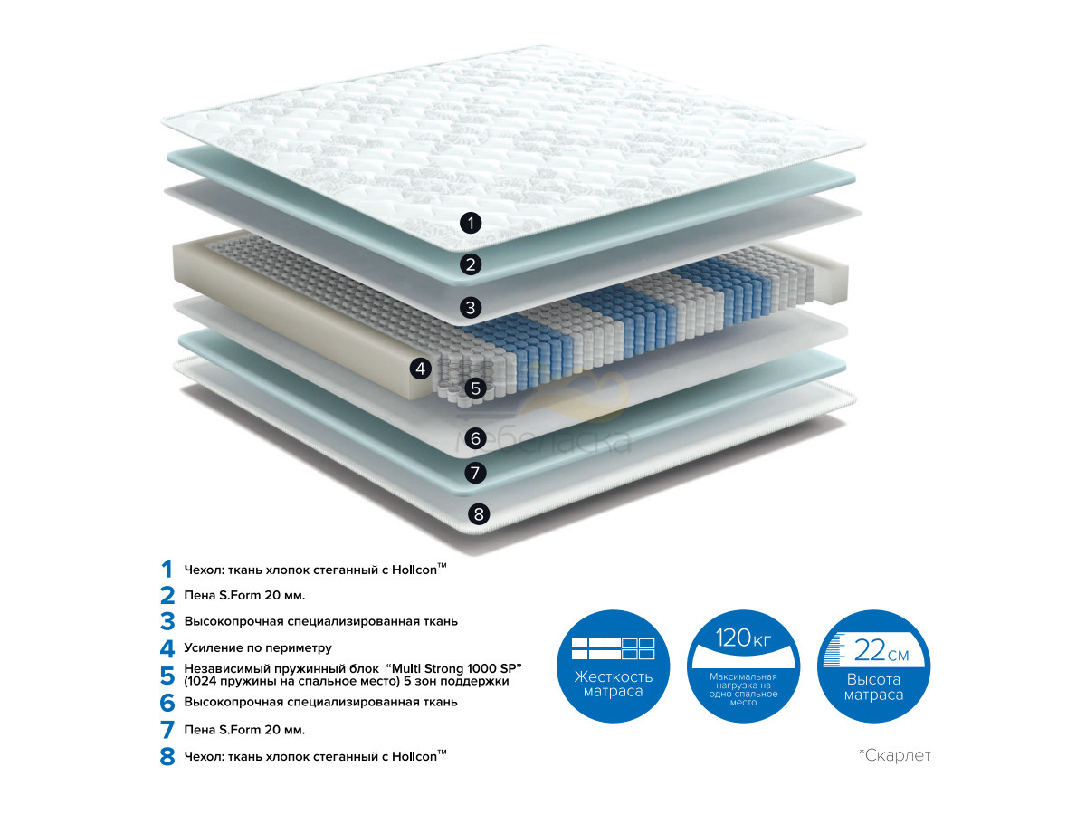 - Матрас Scarlet ширина 1200
