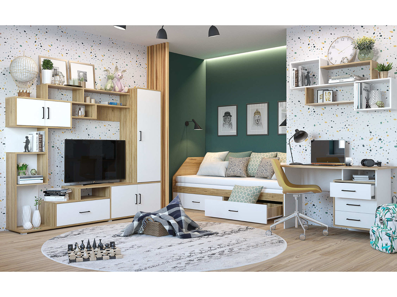 Цена за комплект: Полка навесная, Стол компьютерный Лайт, Кровать, Стенка Пекин
