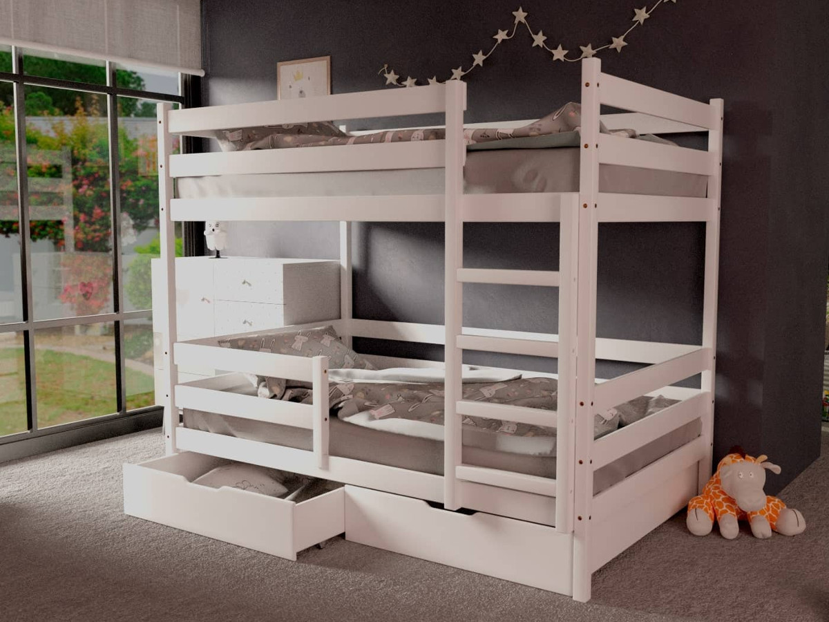 - Двухъярусная кровать без крыши белый 80х160 см с ящиками