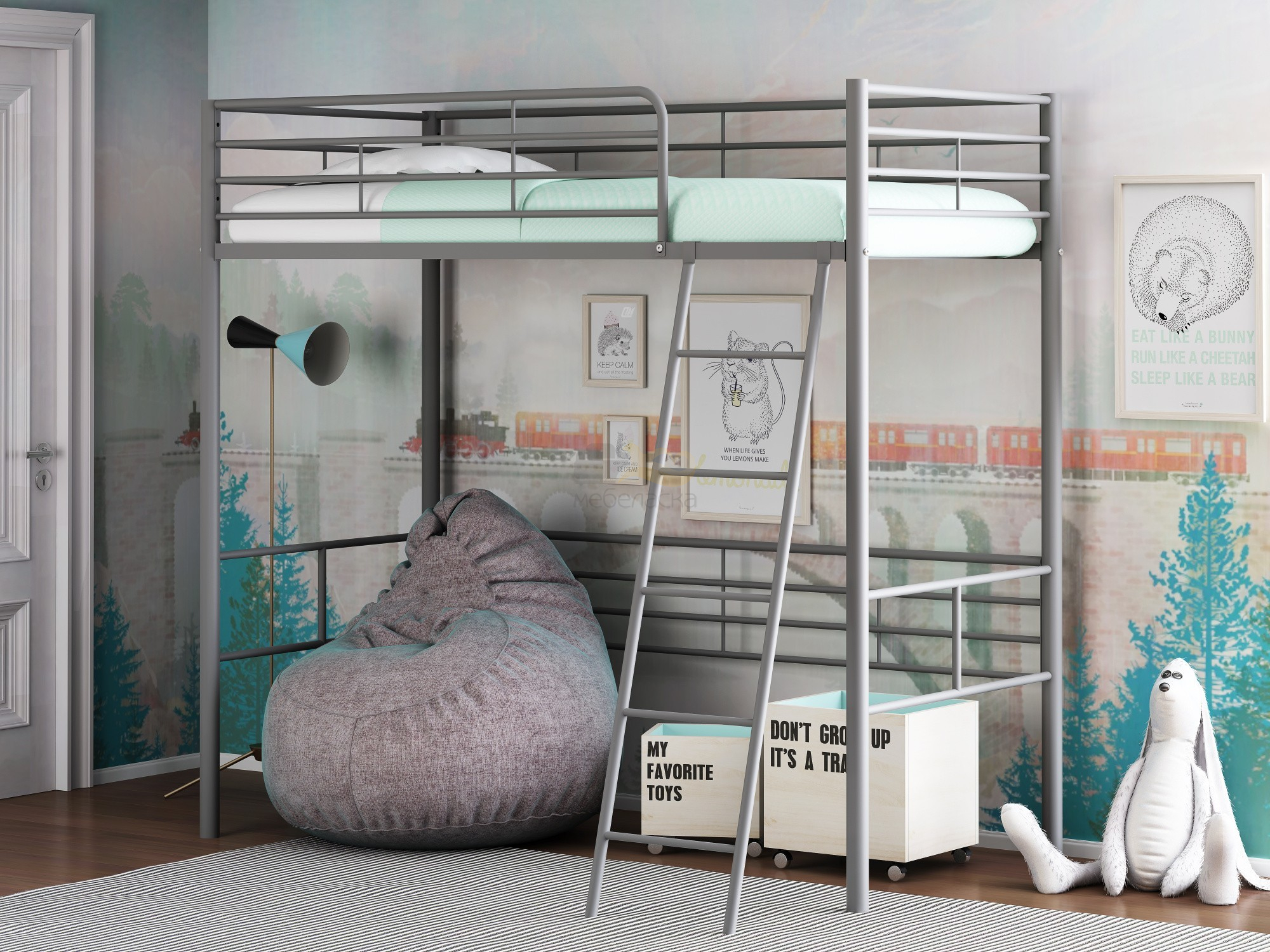 - Кровать чердак Севилья 5.01 Серый