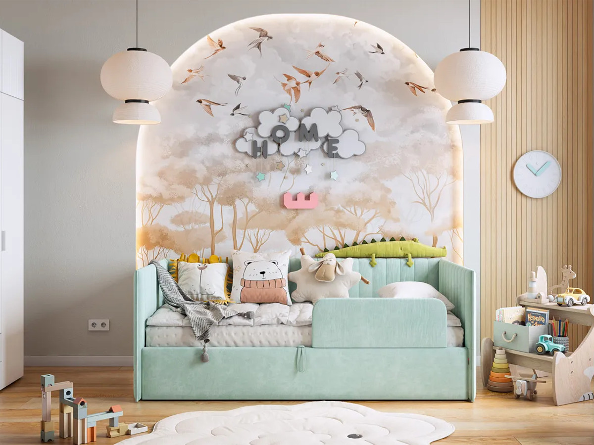 - Кровать-софа с подъемным механизмом Твикс цвет велюра мята