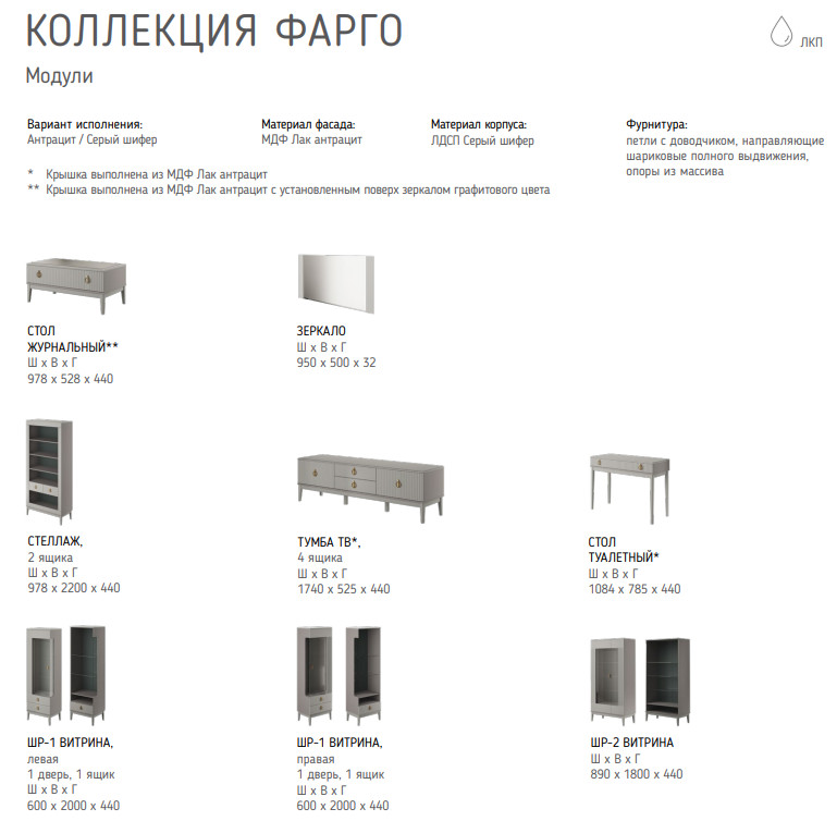 Цена указана за комплектацию на фото: Шкаф с витриной 1-дв. Левый, Тумба ТВ, Шкаф с витриной 2-дверный