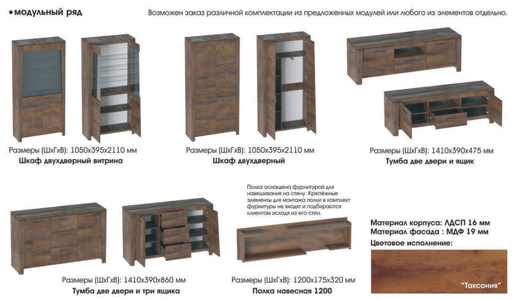Модули (ШхГхВ), мм: