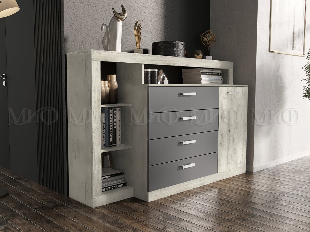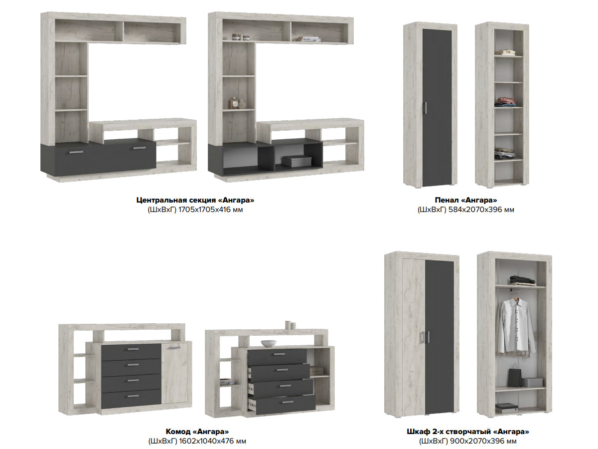 - Гостиная модульная Ангара Графит, Дуб Крафт Белый
