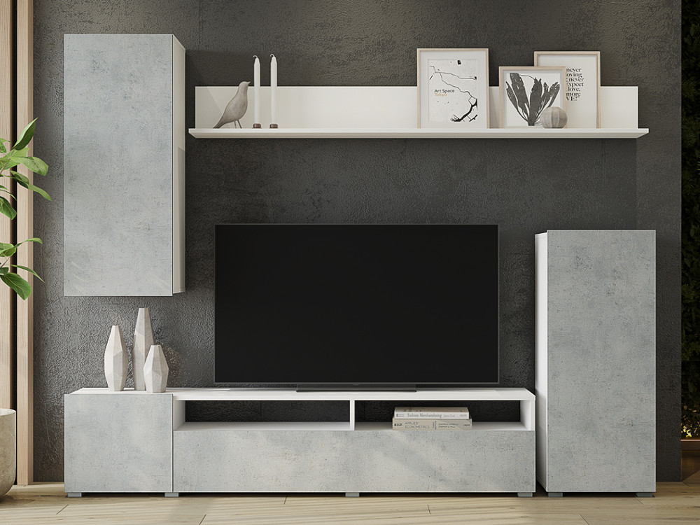 - Стенка Лира Белый-Бетон