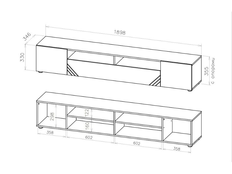 Размер ШхВхГ: 2002*355*346 мм