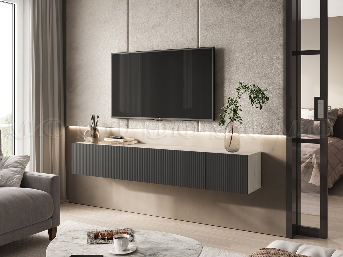 - Тумба под ТВ 2000 Оскар Графит Софт, Дуб Крафт Белый