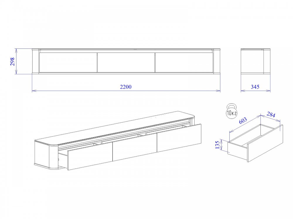 Наполнение тумбы - 3 выдвижных ящика с доводчиками. Шариковые направляющие надежно удерживают ящики при открывании.