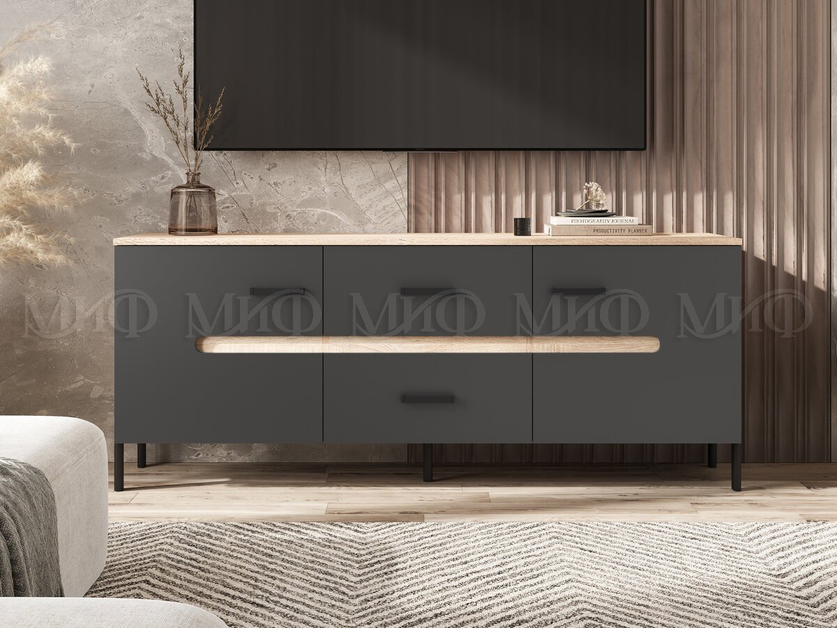 Тумба ТВ (металл) Ким Графит Софт, Дуб Сонома
