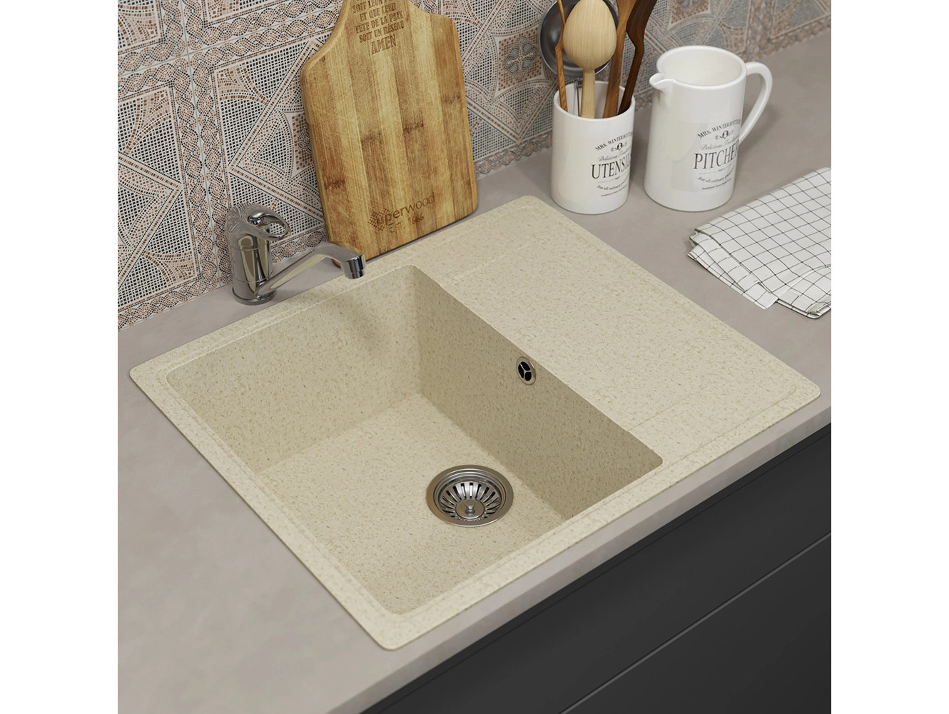- Кухонная мойка Uperwood ECON UPD-201-002 бежевая матовая