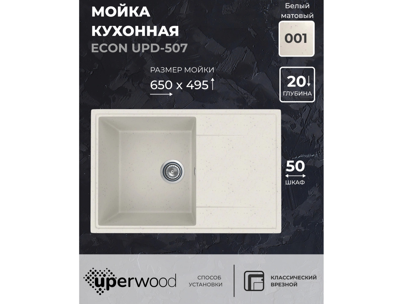 - Кухонная мойка Uperwood ECON UPD-507-001 белая матовая