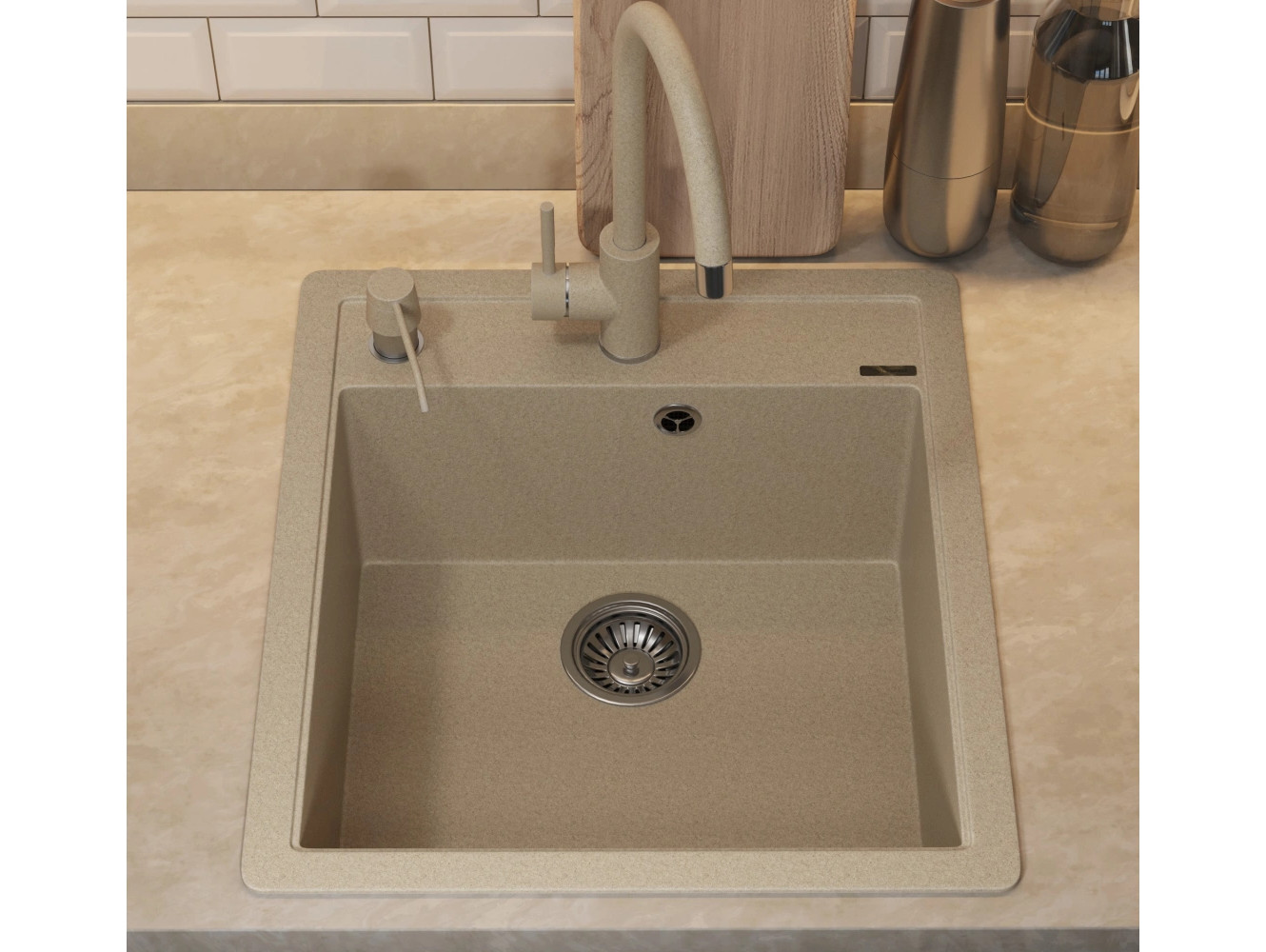 - Кухонная мойка Uperwood Quartz UPD-07-02 бежевая матовая