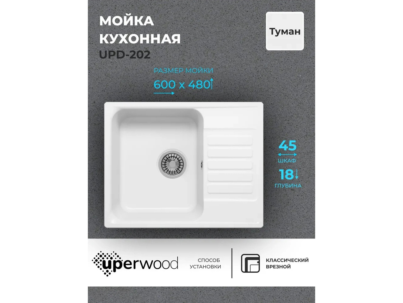- Кухонная мойка Uperwood UPD-202 туман