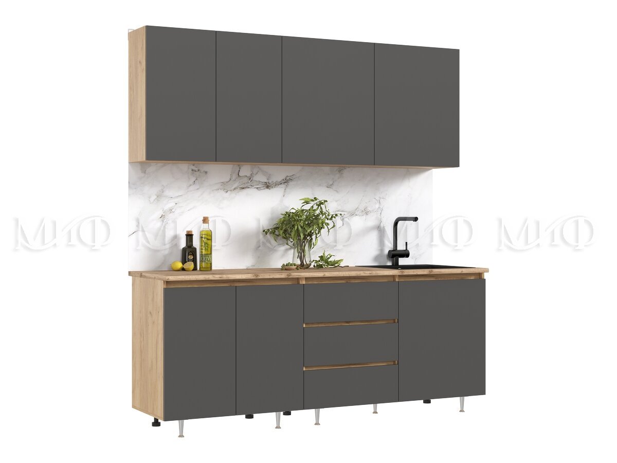 Кухня Челси 2000 мм Компановка №2 Графит, Дуб Крафт (Кастилло)