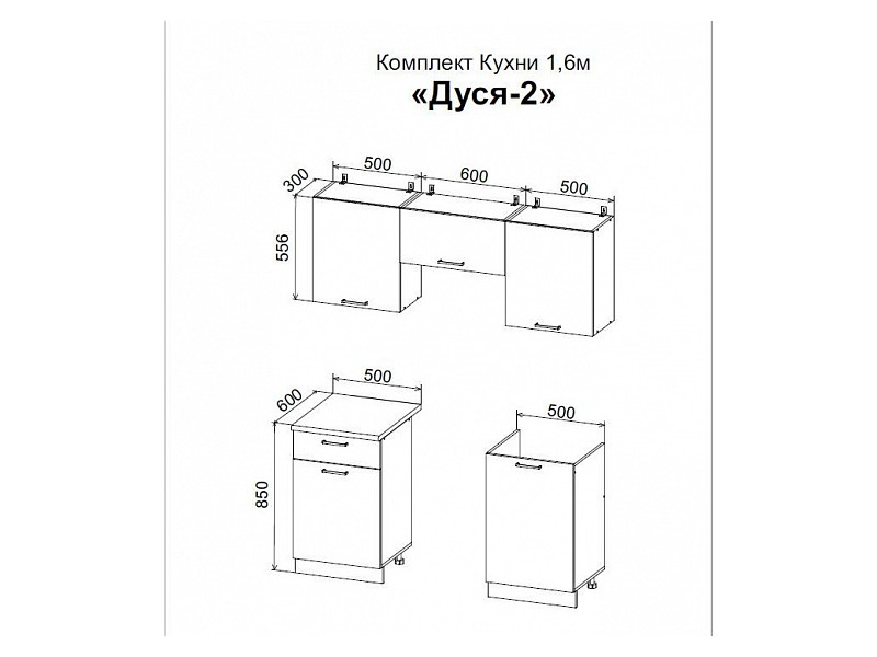 Верхние шкафы: в 556 мм; г (корпус+фасад) 300 мм;