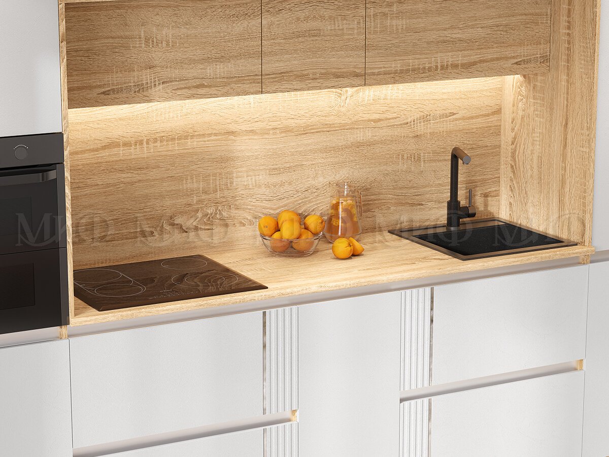 Цвет: фасад МДФ Пластер Бьянко / корпус сонома
