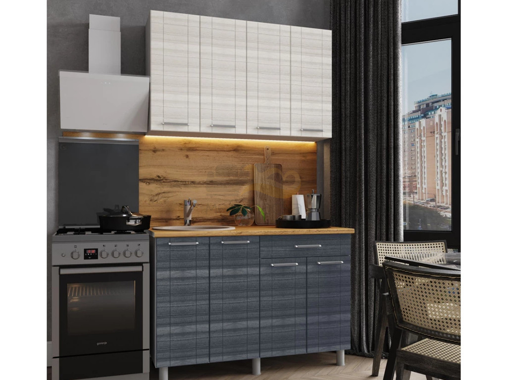 - Кухня Лига 1200 МДФ Сандал Белый/Сандал Серый без столешницы