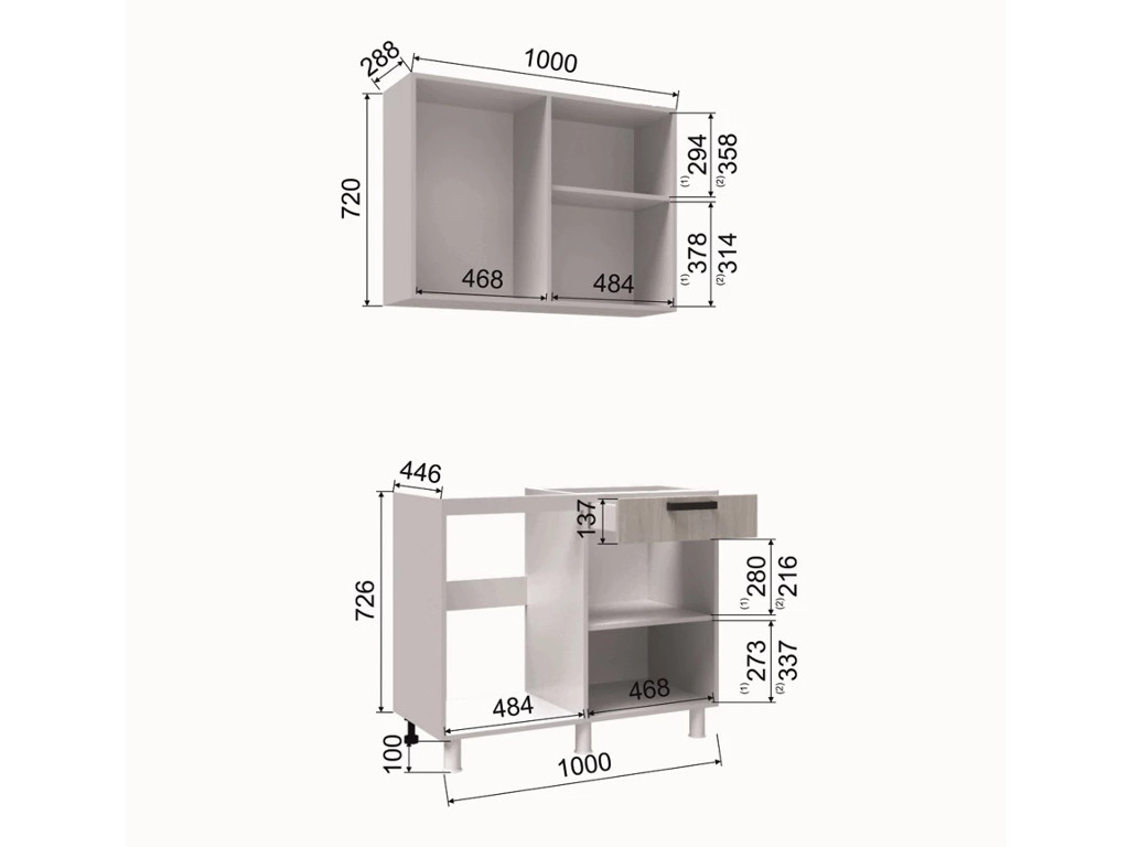 - Кухня Ривьера 1000 МДФ Карбон Фарфор без столешницы