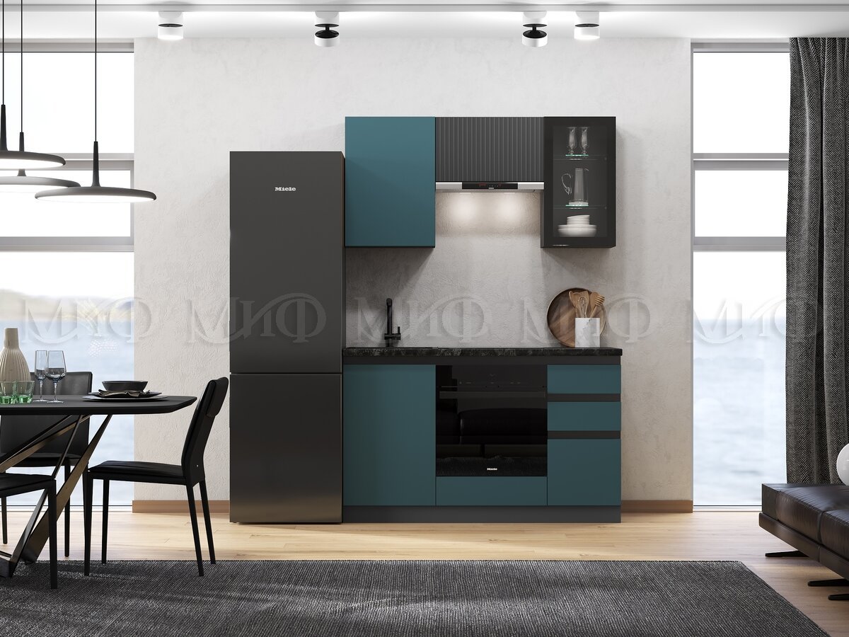 - Кухня Техно-6 1500 мм Графит/Атлантик софт