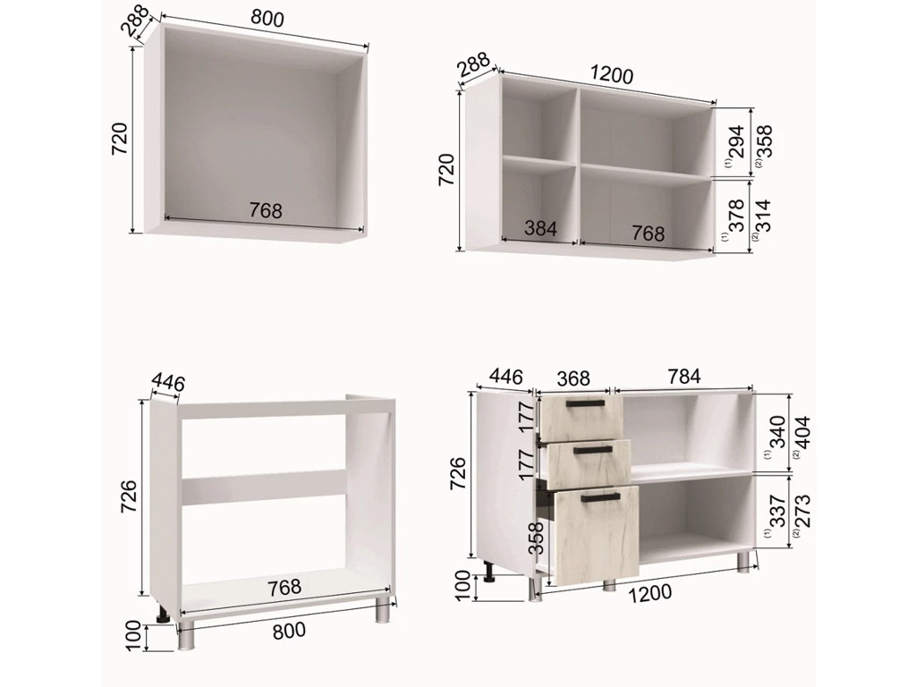 - Высота нижних шкафов, мм 826