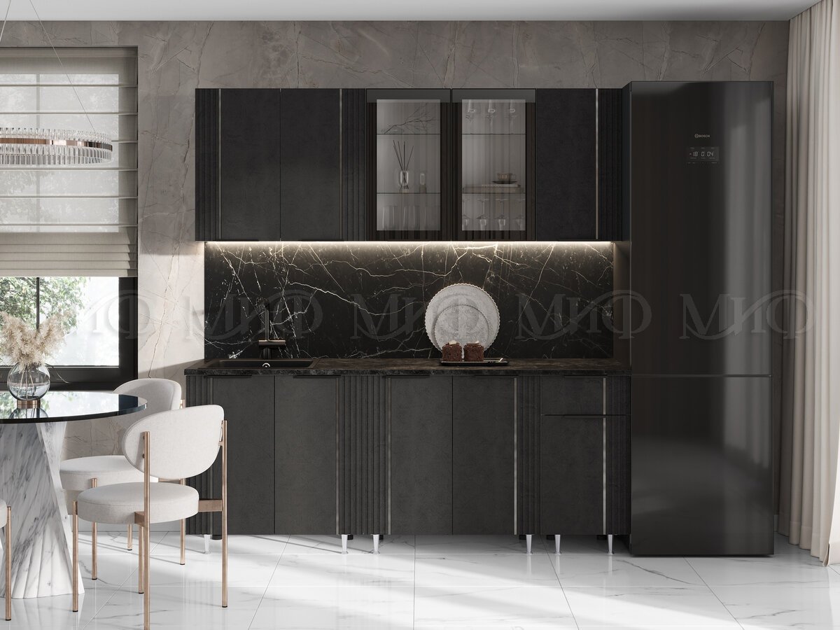 - Кухня Виктория 2000 мм Пластер Блэк/Белый (Кастилло темный)