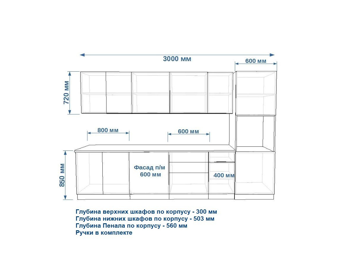 - Кухонный гарнитур 21 Белый Вегас 3000 мм