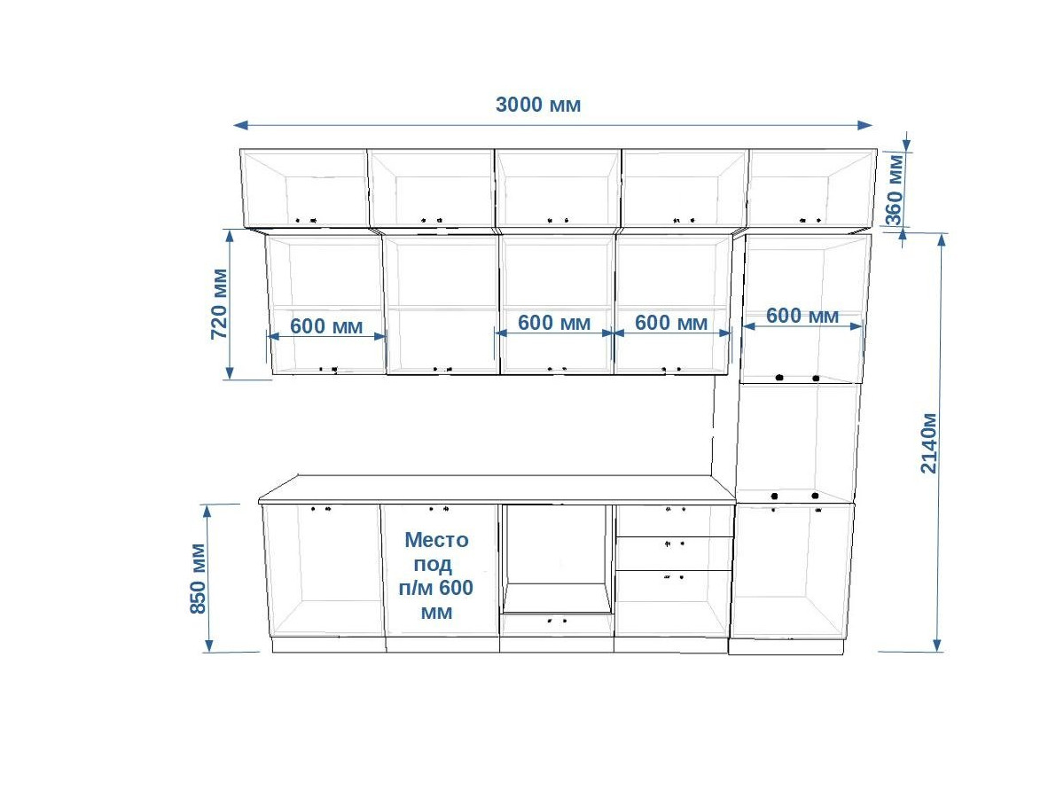 - высота верхних шкафов 720 мм