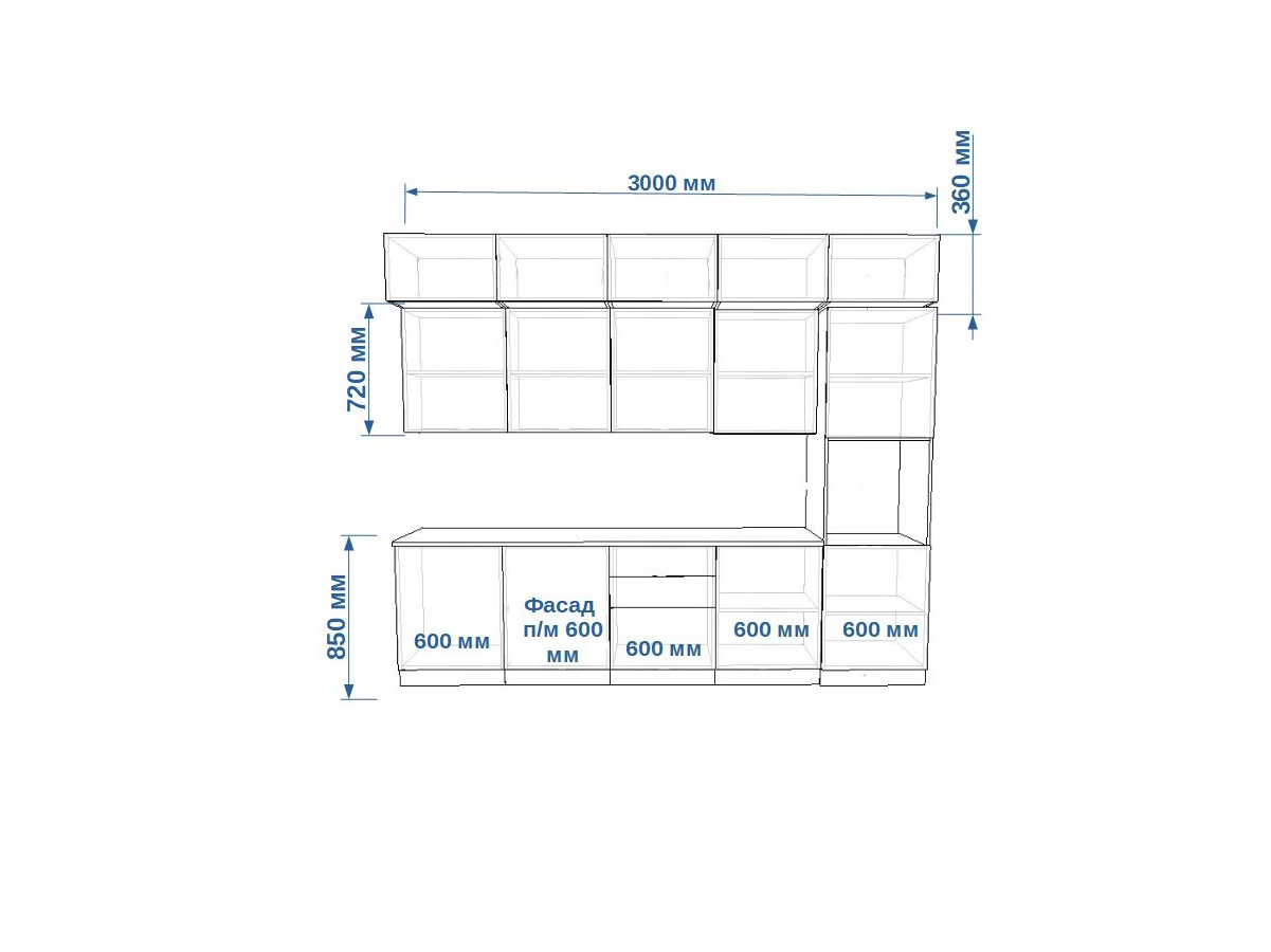 - высота верхних шкафов 720 мм