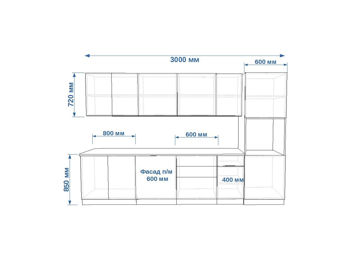 - Кухонный гарнитур арт 5 Фаска Обсидиан Пикрит 3000 мм