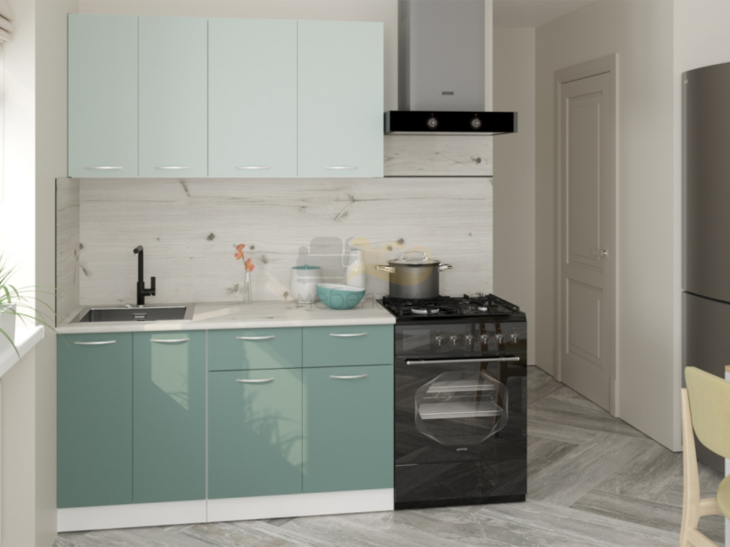 Мойка, смеситель, стеновая панель и посудосушитель в комплект гарнитура не входят.