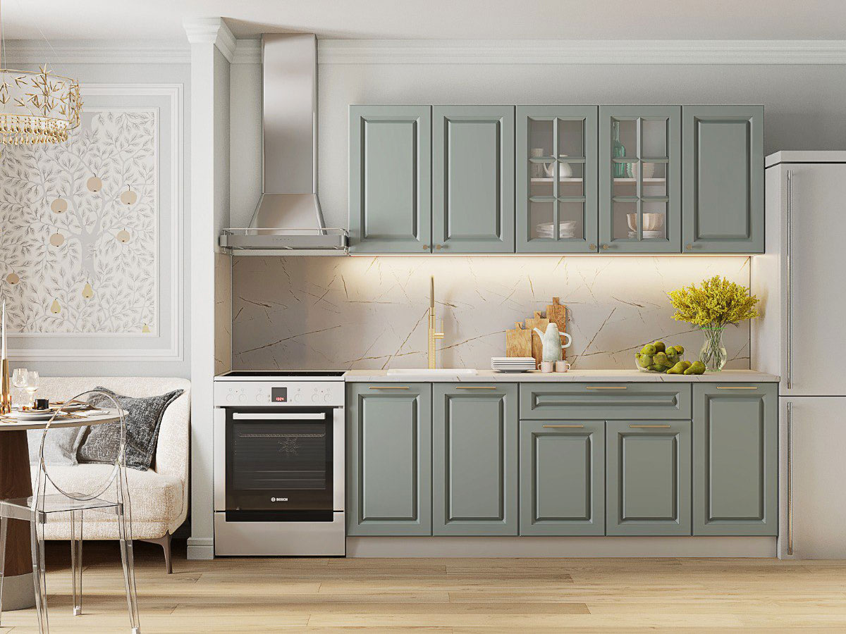 - Кухонный гарнитур Грин Грей Софт 2000 мм