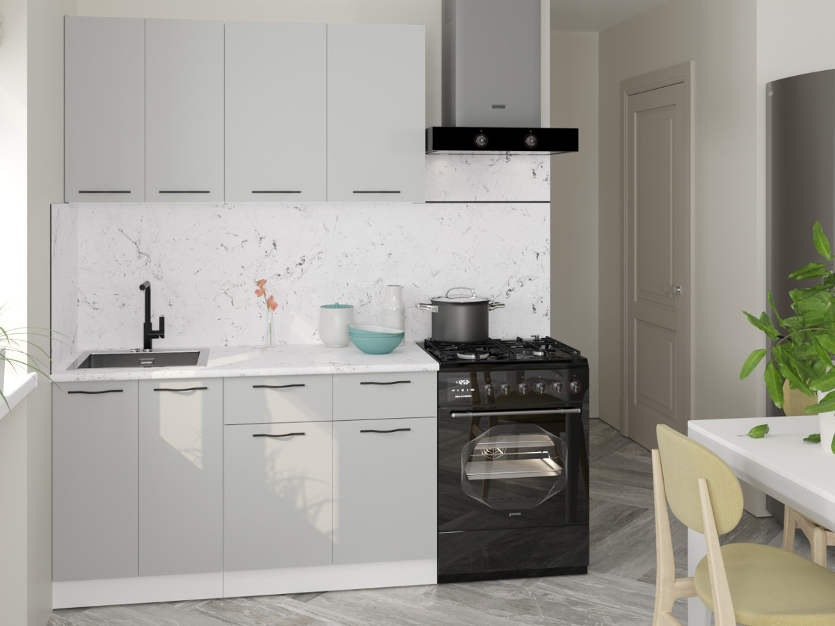 Мойка, смеситель, стеновая панель и посудосушитель в комплект гарнитура не входят.