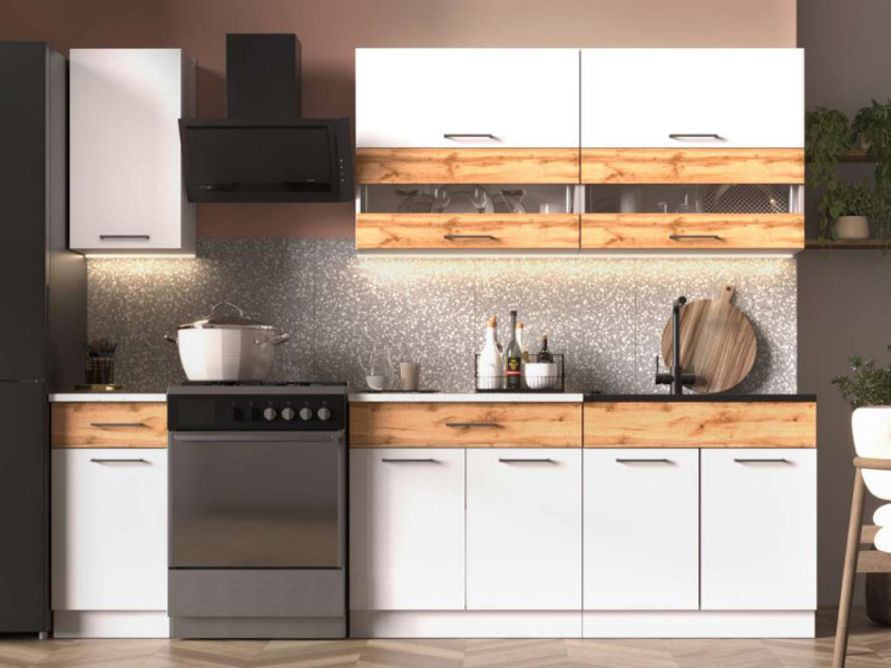 - Кухонный гарнитур Ингрид ЛДСП 2000 мм Белый-Дуб Вотан