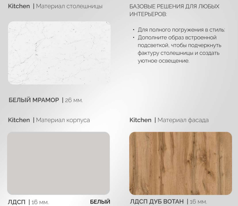 - ЛДСП корпус Белый текстурный, цоколь в цвет корпуса.