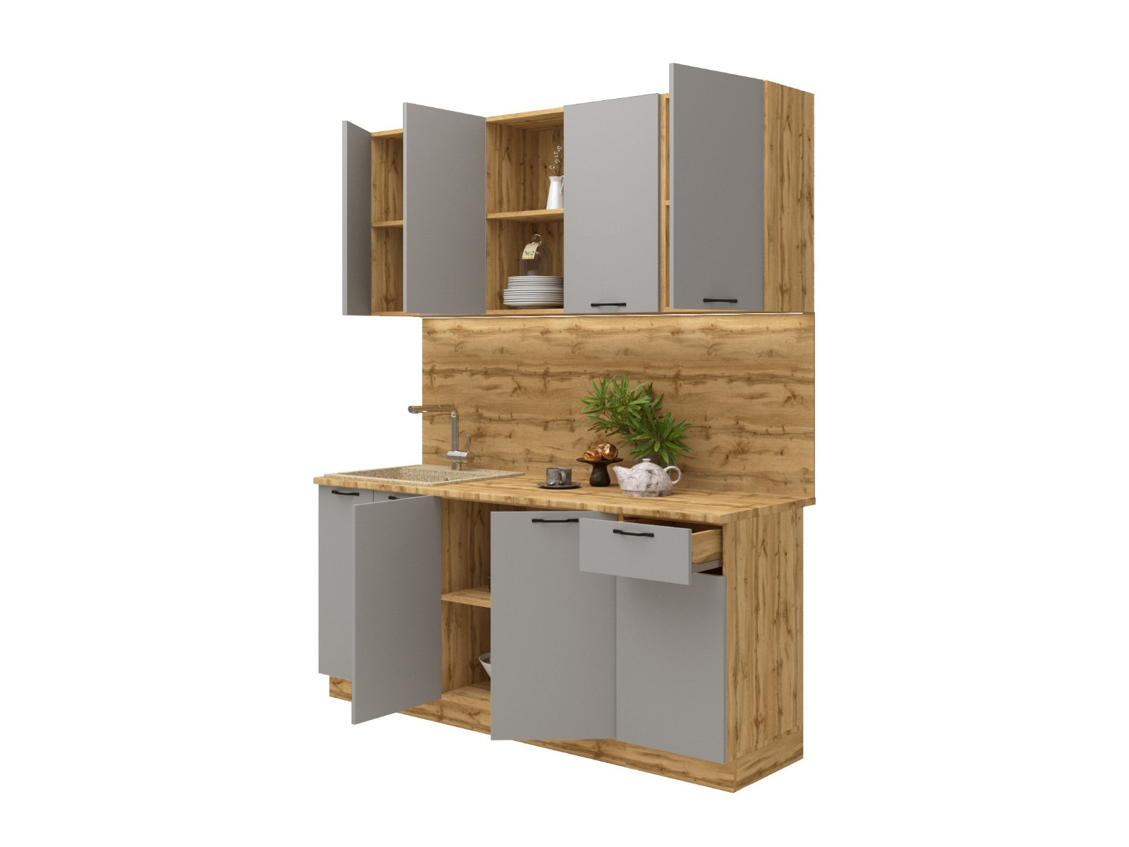 - Кухонный гарнитур Валерия 1800 мм МДФ Вотан/Серый