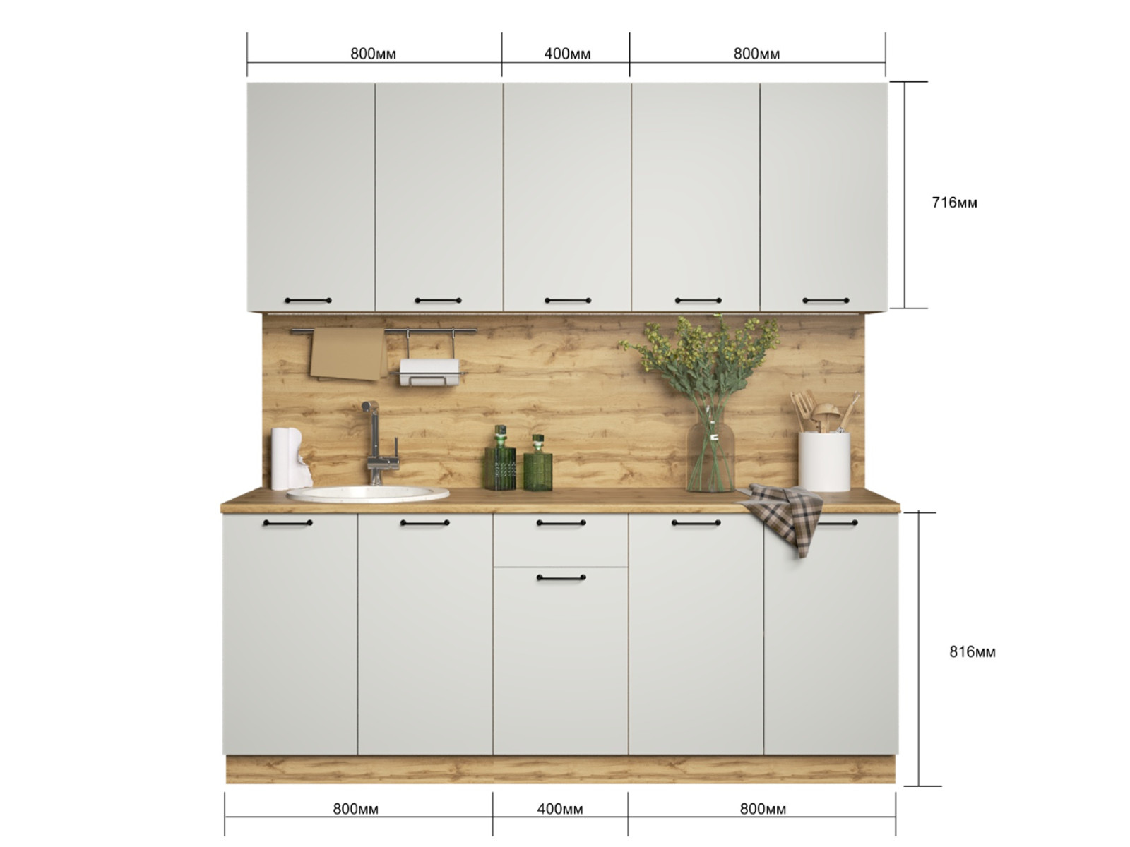 - Кухонный гарнитур Валерия 2000 мм МДФ Вотан/Серый