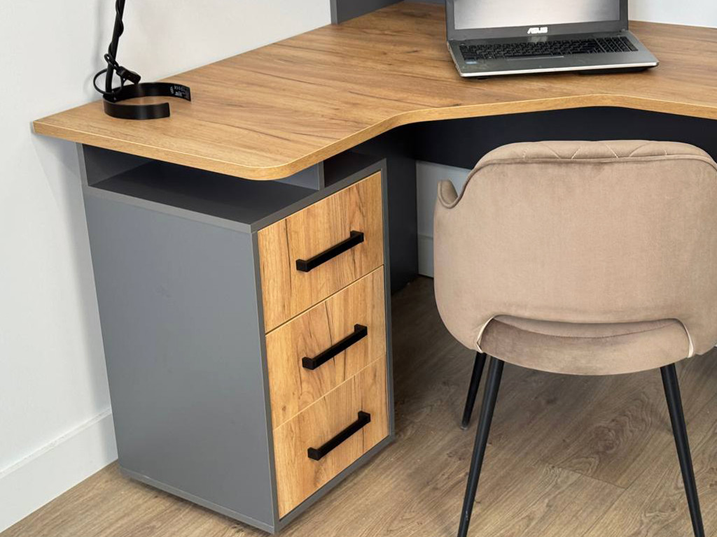- Стол компьютерный 1200 угловой Лайт-2 графит/дуб крафт золотой