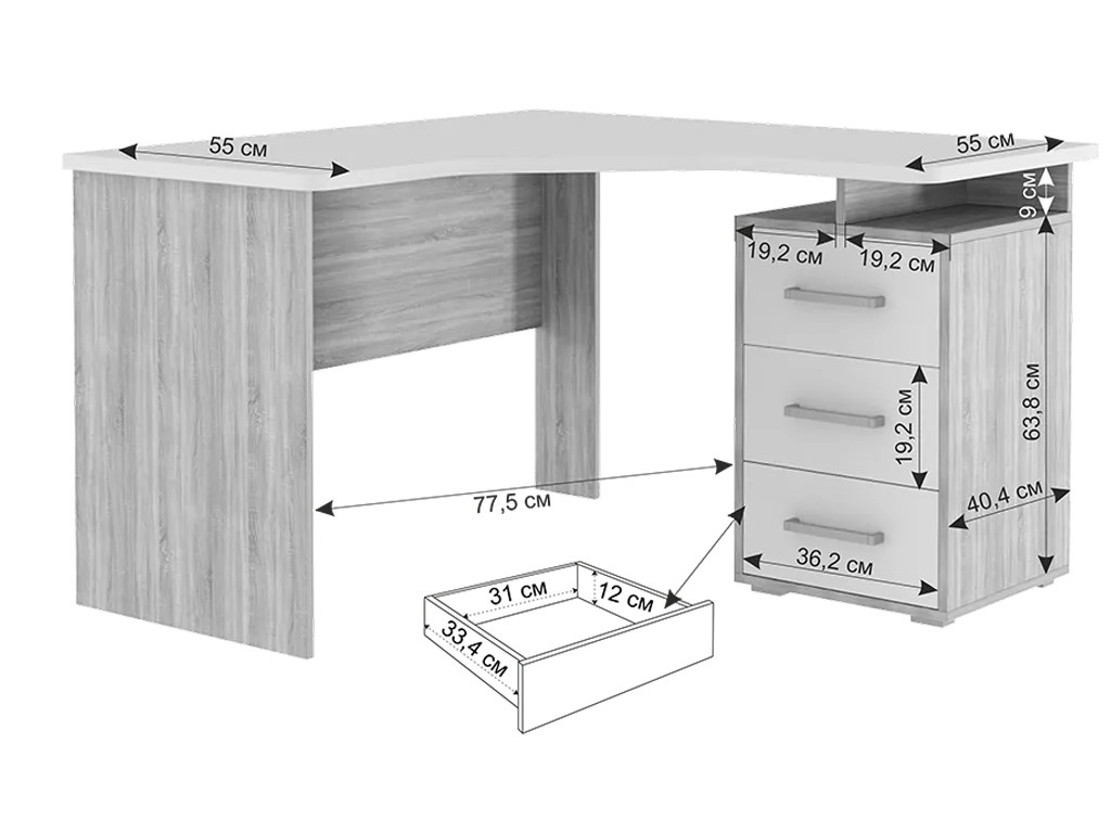 Стол компьютерный 1200 угловой Лайт-2 кашемир/дуб крафт золотой