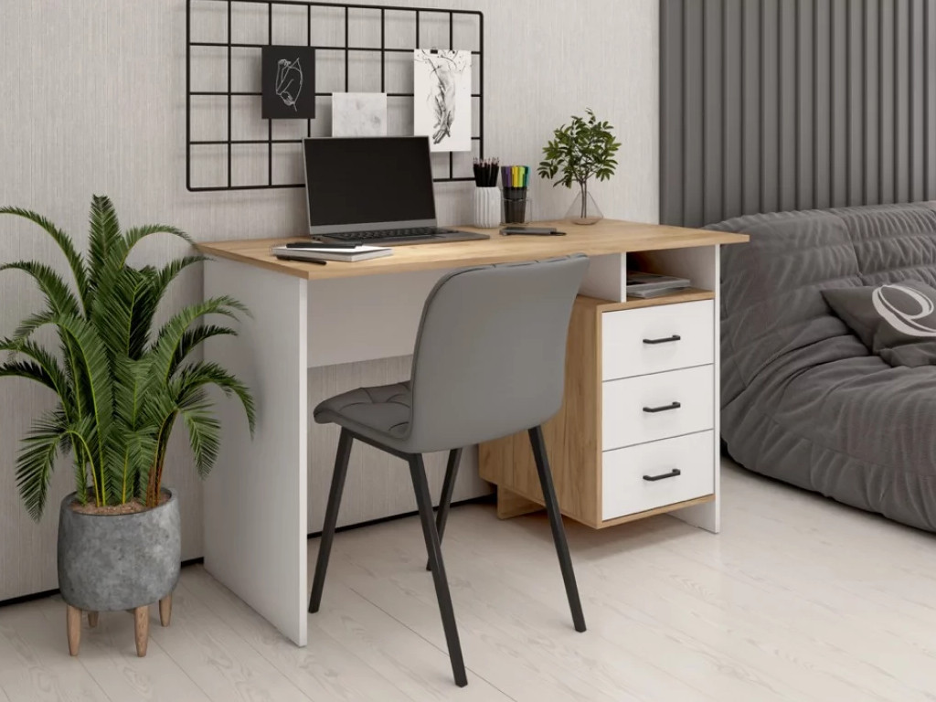 Стол письменный Эйгер Дуб крафт золотой-Белый шагрень