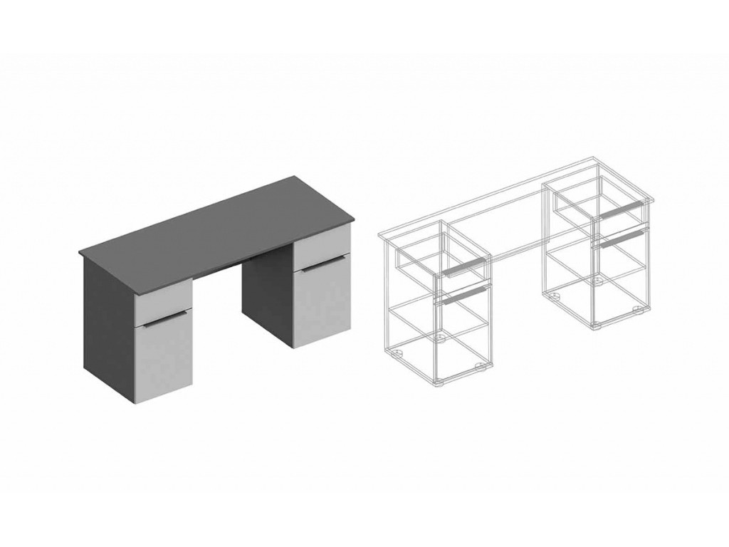 - Стол письменный Вита 2-х тумбовый тёмно серый лофт