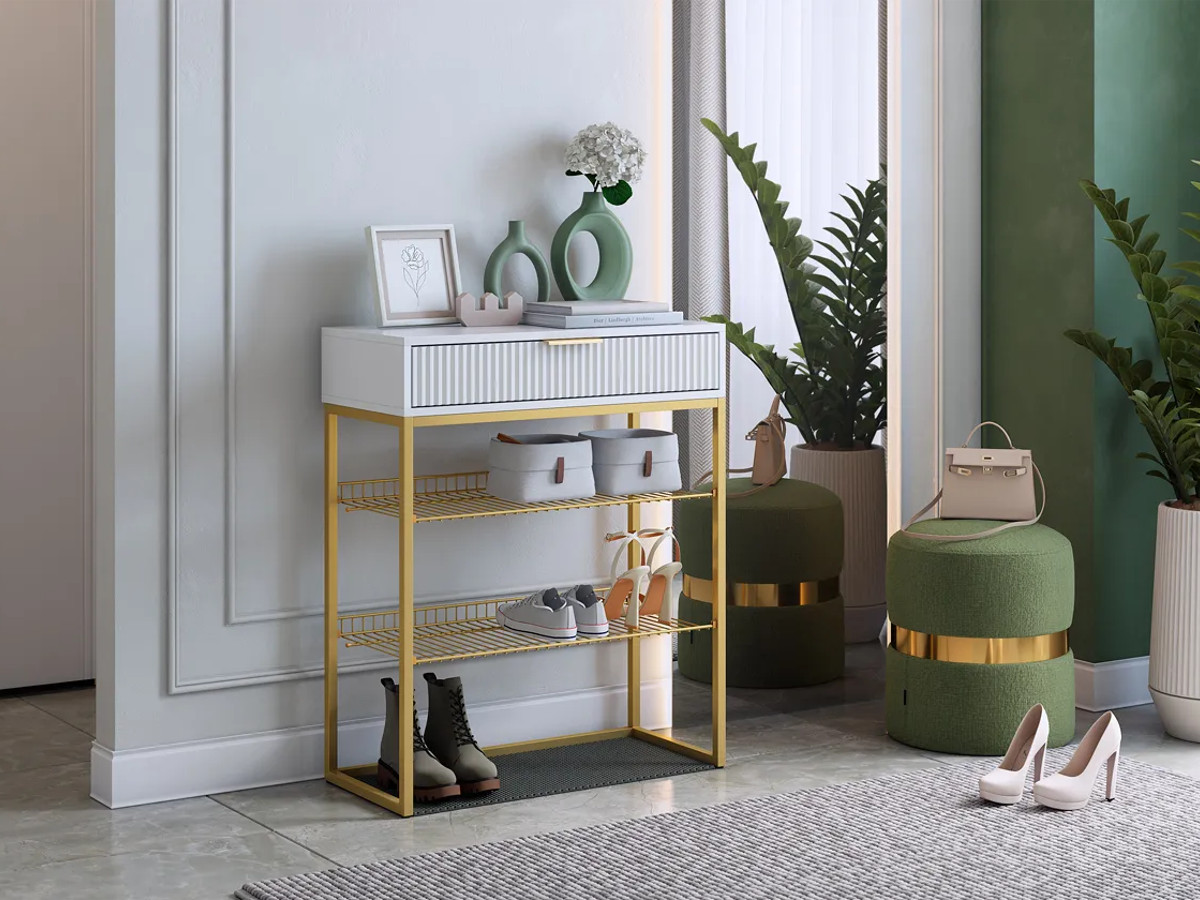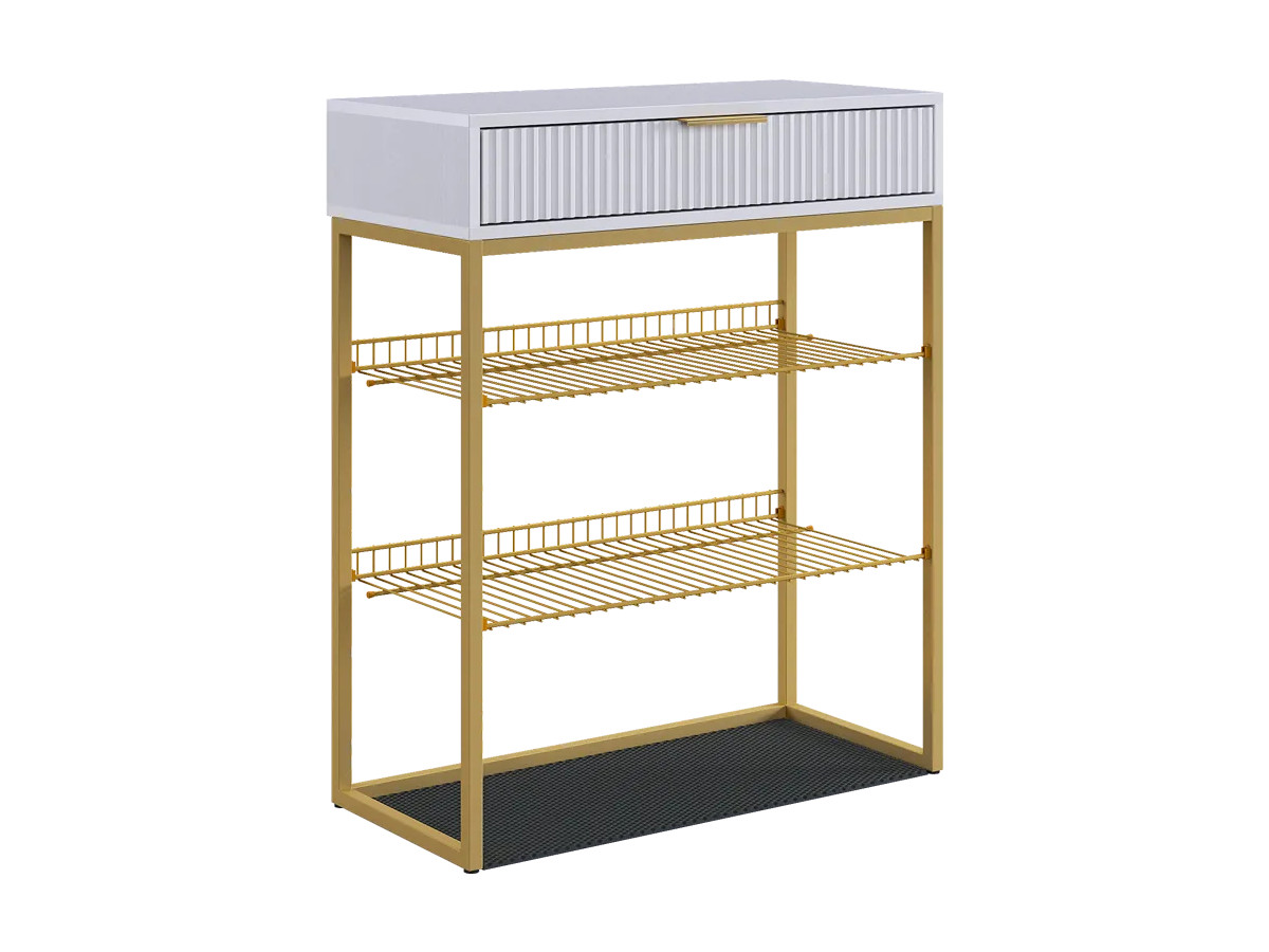 - Обувница Вельвет белое дерево/белый матовый/золото