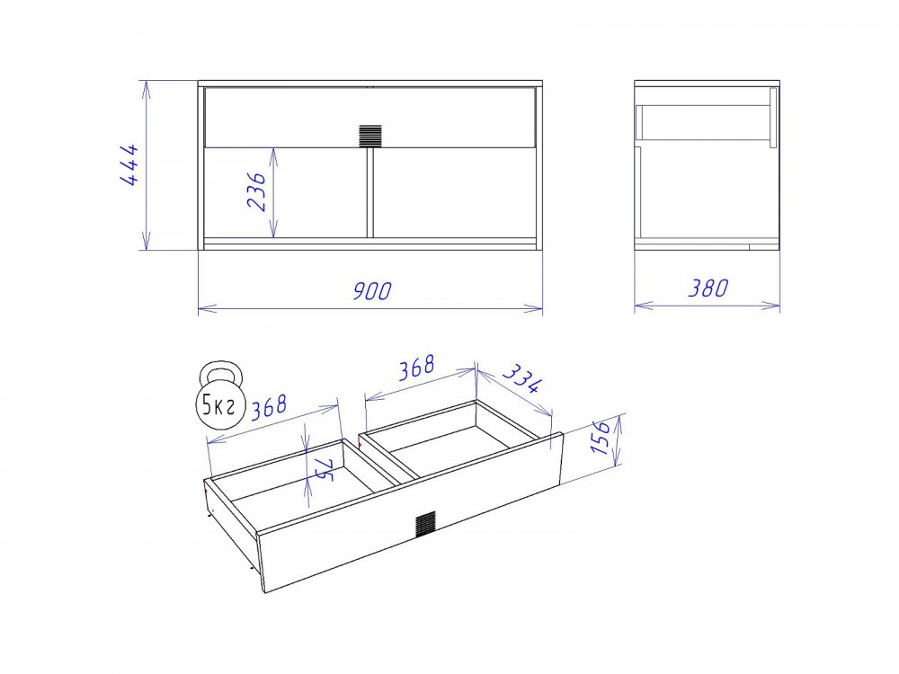 Размер Ш*Г*В: 900*384*444 мм